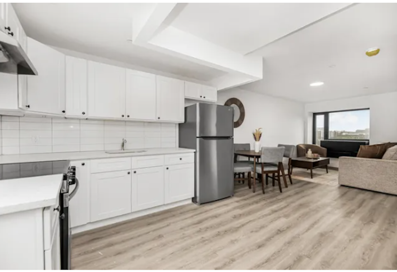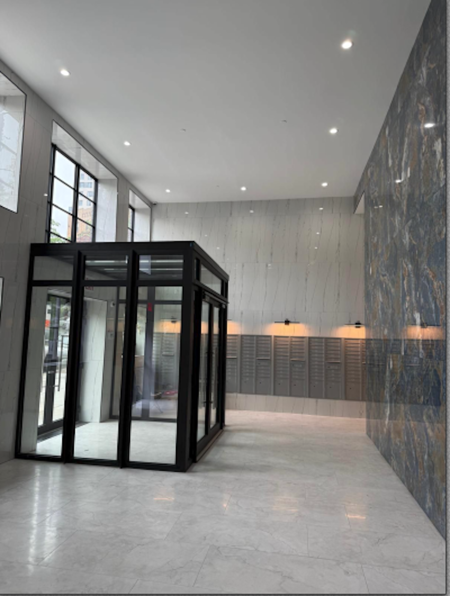 Amenities include covered parking, bike storage lockers, a shared laundry room, gym, and outdoor terrace. Residences are equipped with air conditioning, intercoms, and name-brand kitchen appliances, countertops, and finishes. Tenants are responsible for electricity and electric stove.